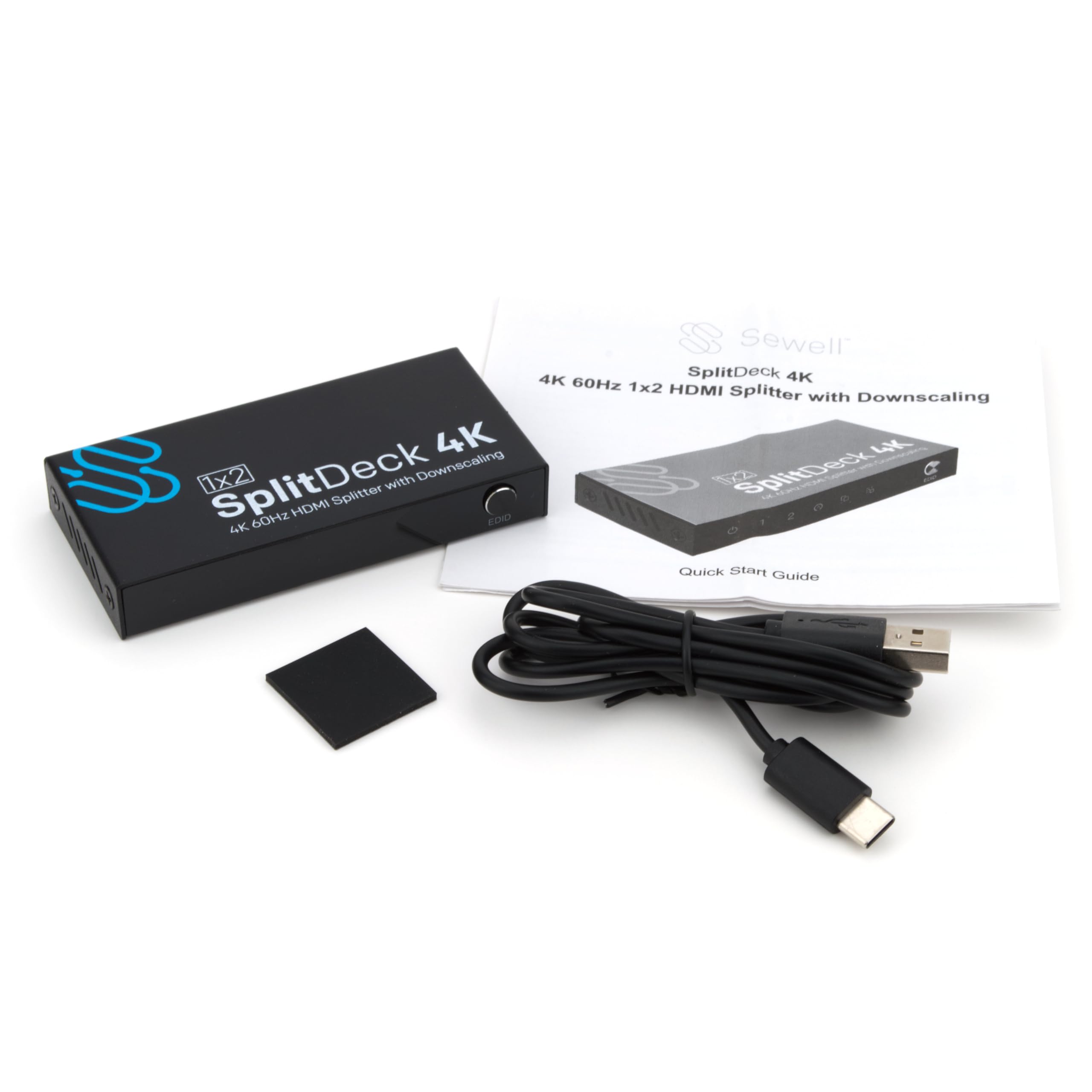 Sewell SplitDeck 4K, 4K 60Hz HDMI Splitter with Downscaling to 1080p. Automatic, Downscaling, and EDID Modes. (1x2)